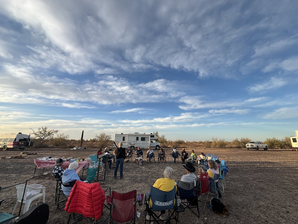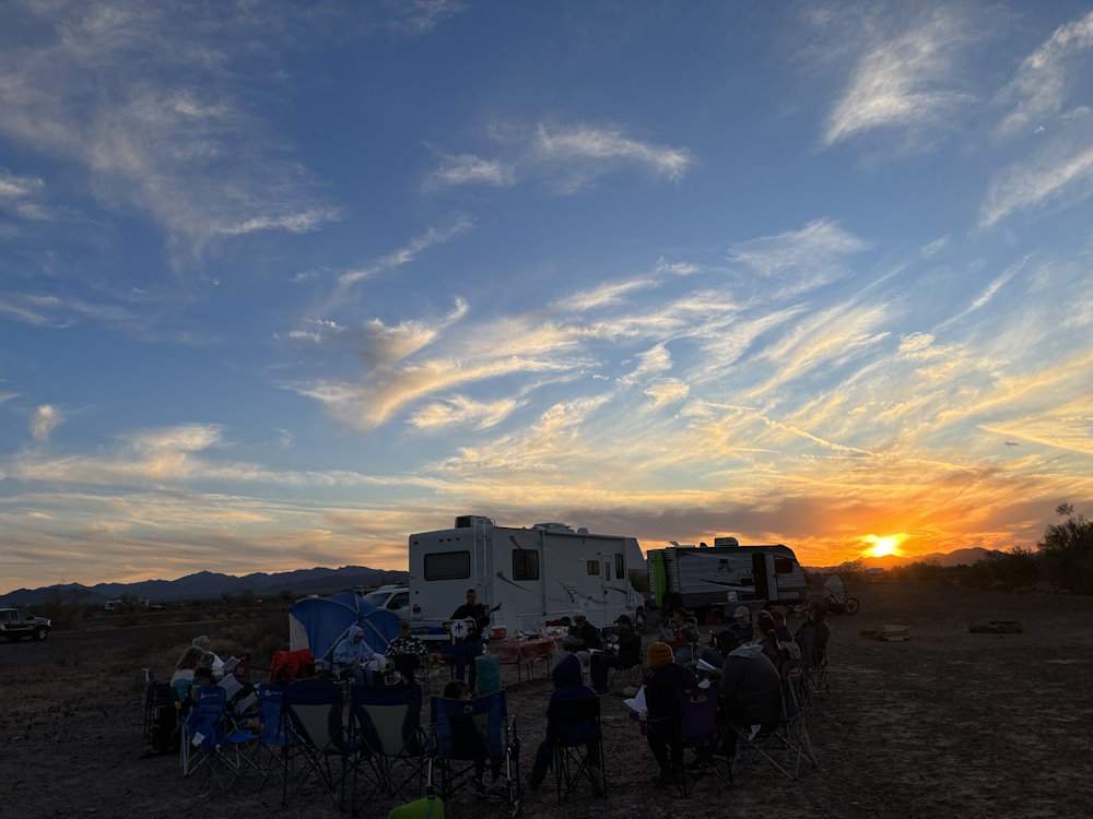 So I found myself in Bouse, AZ saying goodbye to one of my dearest old friends preparing for the long (hah!) 15 mile trek south to a Campers for Christ meetup near Quartzsite. The way this trip to Arizona has flowed so seamlessly from one location to the next just boggles my mind, especially considering all I did in the beginning was pick a direction and start driving. It has just been one amazing blessing after another and I recommend you catch up on the last few blog entries for the full story if you haven’t already.